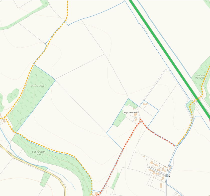 The map shows a footpath that goes in front of High Tun leading to Leaky Dam 2 and along the side of Daglingworth Grove to Duntisbourne Rouse. I suggest that residents use this public right of way to avoid the road and to stop causing damage to these environmental schemes.